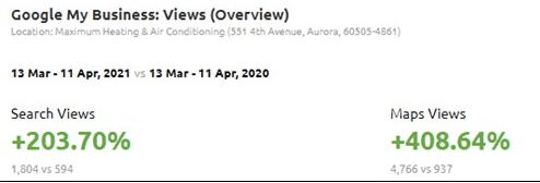 Most of our clients were also not taking advantage of all the great opportunities you can do with Google My Business. So we get to create some HUGE results for them!