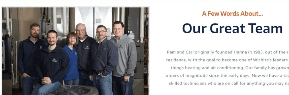 Page description: Hanna Heating & Air Conditioning. Fast, reliable heating and air service for Wichita families since 1983. 24/7 Emergency Service. (EXCELLENT)