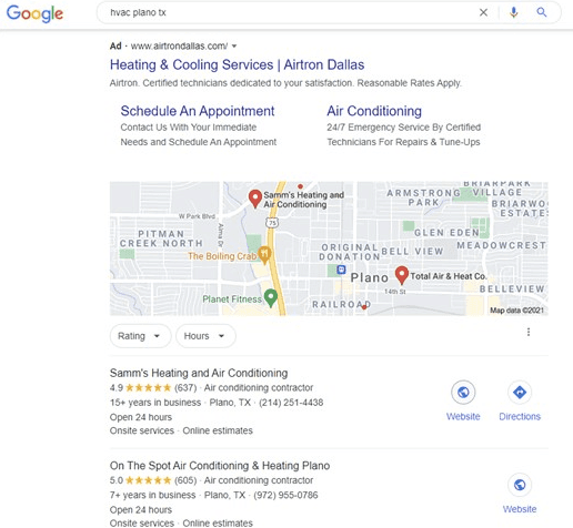 When somebody Googles ‘HVAC’ in your area, this is what they see – including paid ads.