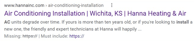 This is an example of a well-optimized website page (one of our HVAC clients)