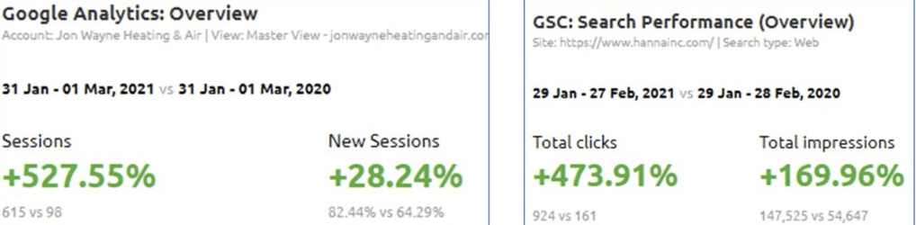 Take a look at this client that signed on with us one year ago. This shows the year-to-year comparison of how much their growth on Google increased once we started handling their online marketing needs.
