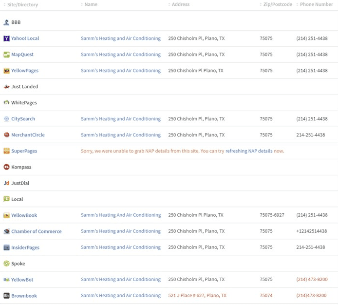I was surprised to see you missing from some of the big sites that typically HVAC companies are on, including the Better Business Bureau, Localeze, and WhitePages.